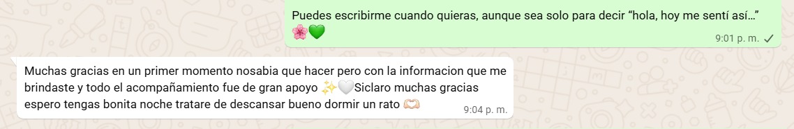 Guían sobre los cuidados antes, durante y después de abortar. Ayudan a resolver tus dudas y mantienen una escucha activa ante cualquier situación.